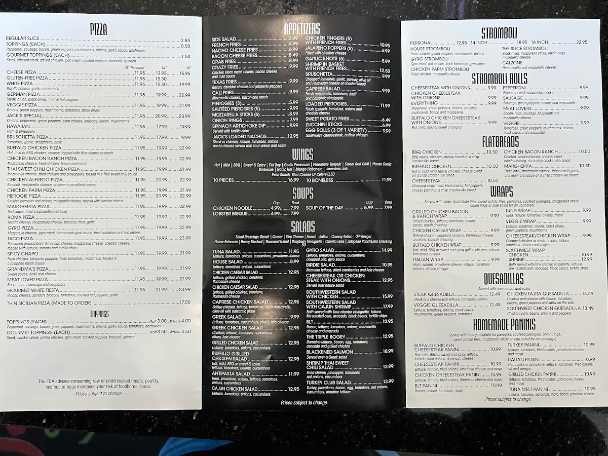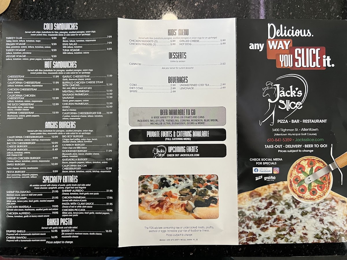 Introducing Jack's Slice, a culinary gem nestled in Allentown, PA, at 3400 Tilghman St. Specializing in mouth-watering pizzas and sandwiches, Jack's Slice stands out for its bold flavors and high-quality ingredients. The menu features a selection of specialty pizzas that cater to diverse palates. Indulge in the White Pizza crowned with ricotta, garlic, and mozzarella, or savor the iconic Hawaiian Pizza with its delightful ham and pineapple pairing.